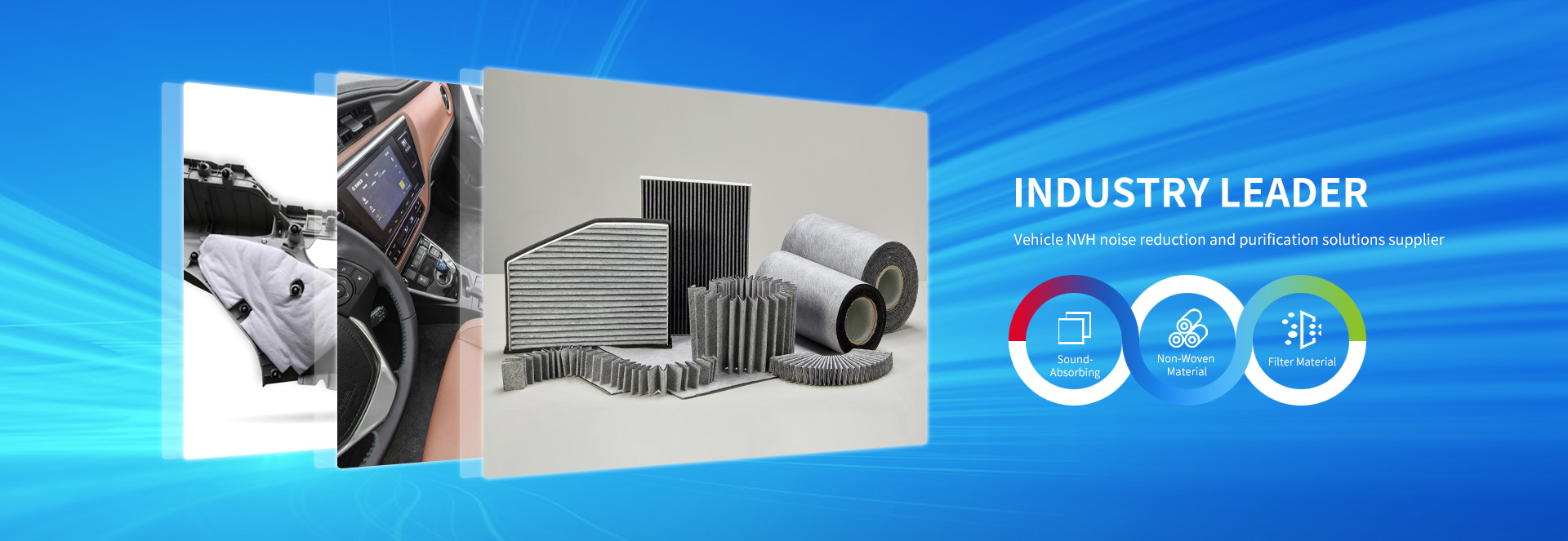 "Superfine fiber" lightweight acoustic material Suntai (3T) cooperates with top science & research institute at home and abroad of auto NVH materials, has independently developed and produced a new generation of auto superfine fiber lightweight acoustic materials, which can be customized to produce “superfine fiber” non-woven and molded raw materials according to different customers’ requirements, including suitcase system, carpet assembly, cowl thermal-insulation pad, bottom plate, fenders and power battery package for automotive interior accessories, to achieve the integrative solutions for automotive NVH noise reduction and purification.